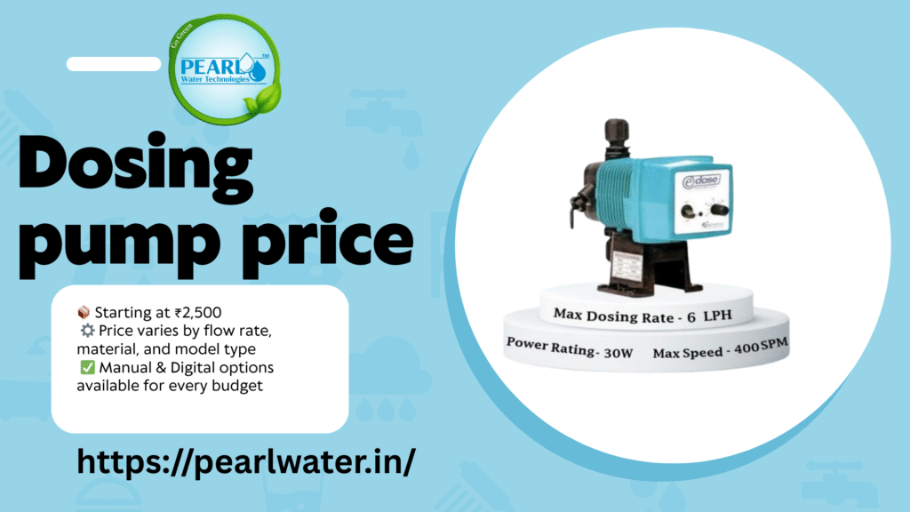 The Dosing Pump by Pearl Water Technologies is available at an affordable price, offering precise chemical dosing, high durability, and easy operation—perfect for RO systems and industrial water treatment needs.